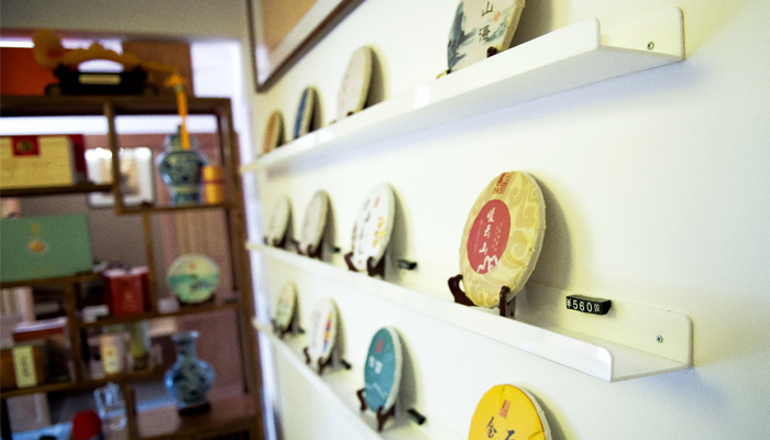 店內(nèi)琳瑯滿目的宿云古樹(shù)茶產(chǎn)品